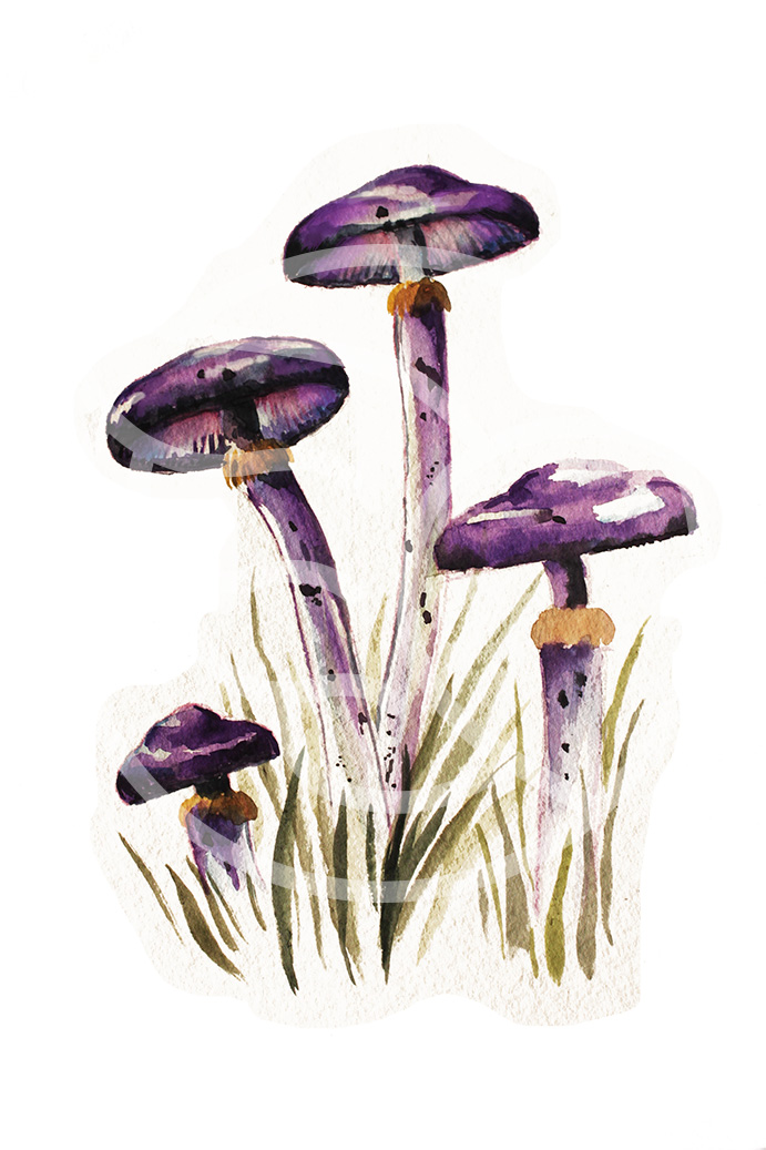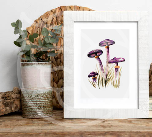 Acuarela Hongo Cortinarius, imagen 12 cm ancho x 16 cm alto, Sin Enmarcar (medidas consideran sólo la imagen).