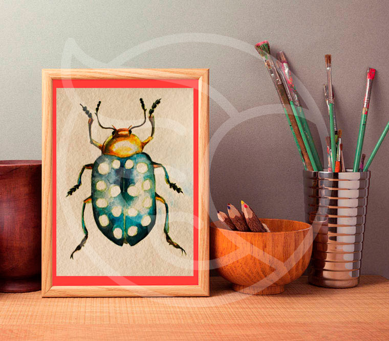 Acuarela Escarabajo Azul , imagen 12 cm ancho x 14 cm alto, Sin Enmarcar (medidas consideran sólo la imagen).